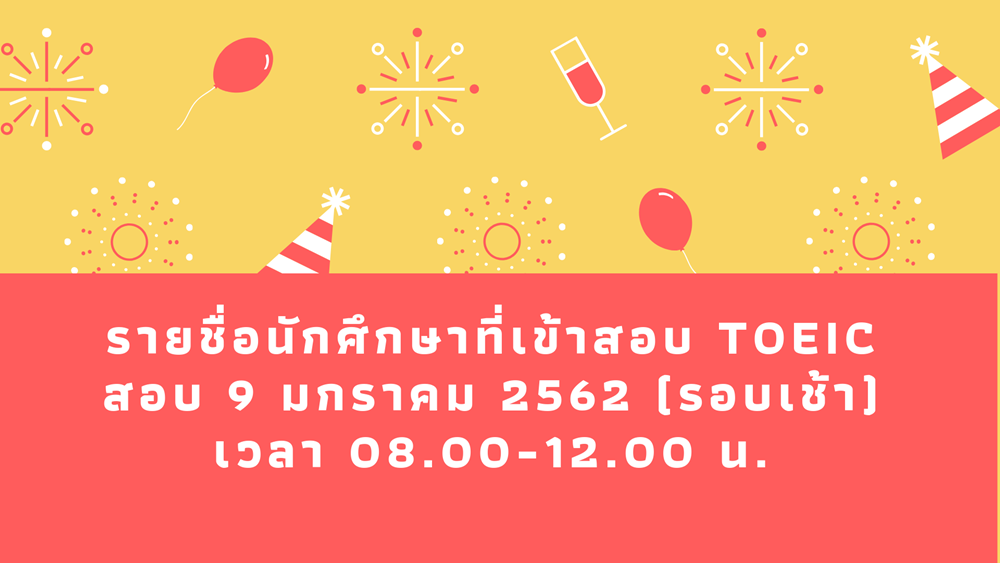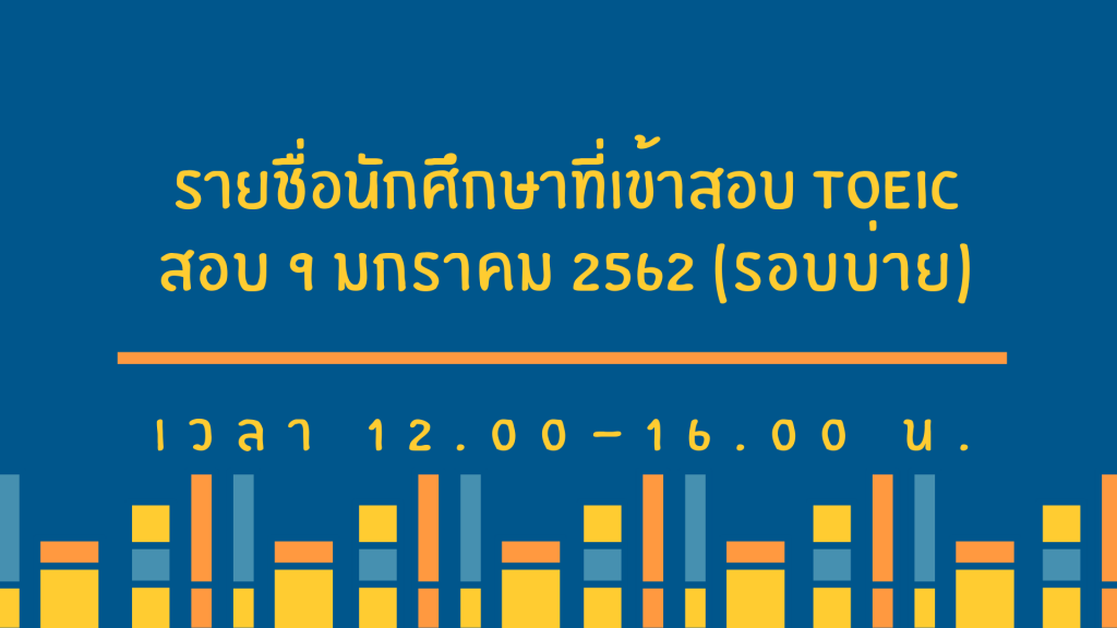 ประกาศรายชื่อนักศึกษาศูนย์การศึกษานอกที่ตั้ง ตรัง เข้ารับการทดสอบ TOEIC วันที่ 19 – 20 ธันวาคม 2561December 17, 2024