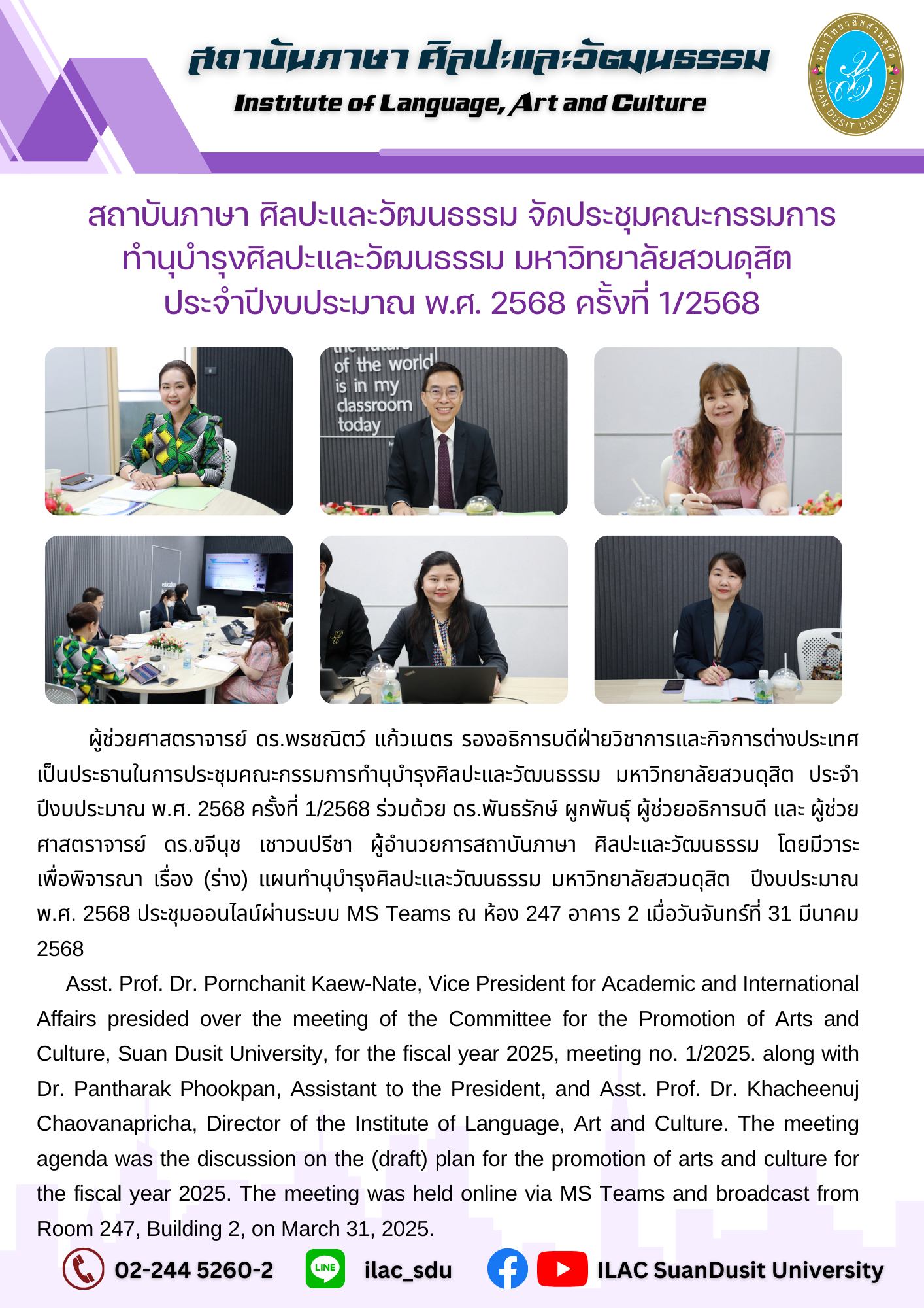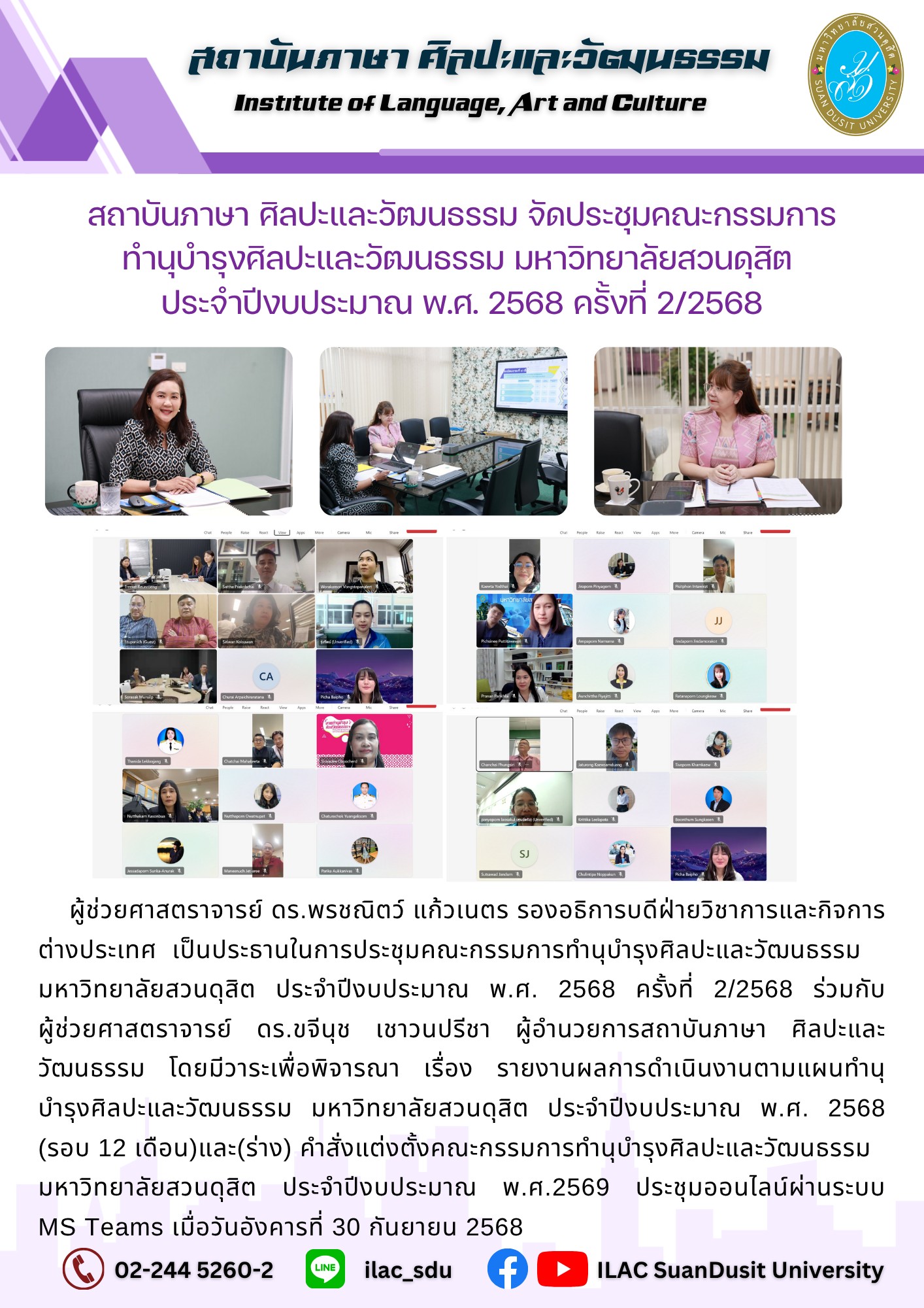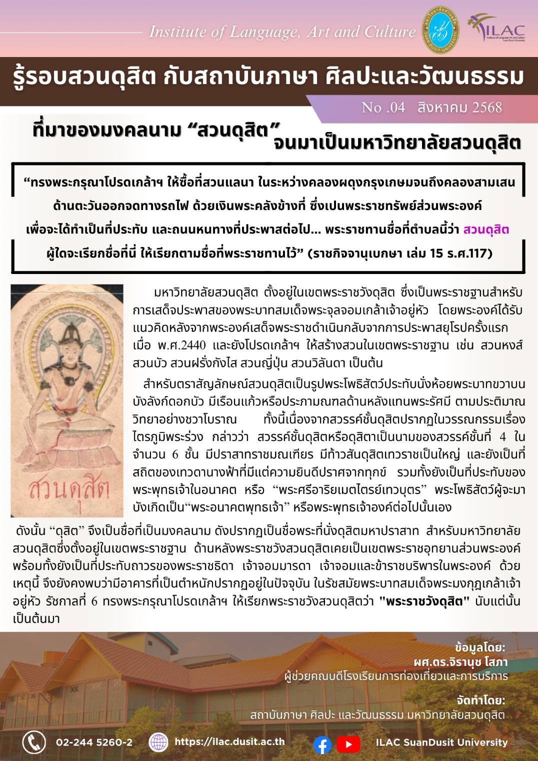 - แผนทำนุบำรุงศิลปะและวัฒนธรรม มหาวิทยาลัยสวนดุสิต ปีงบประมาณ พ.ศ. 2568